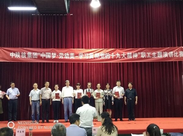 5月14日,中陜核集團(tuán)舉辦了“中國夢·勞動美——學(xué)習(xí)貫徹黨的十九大精神”職工主題演講比賽,來自集團(tuán)和兄弟單位的30名選手各顯神通,以良好的狀態(tài)展現(xiàn)了陜核人勇于作為、勇于擔(dān)當(dāng)?shù)木耧L(fēng)貌。經(jīng)過緊張激烈的角逐,我公司參賽選手劉佩的演講《醉美》獲得了三等獎的好成績。