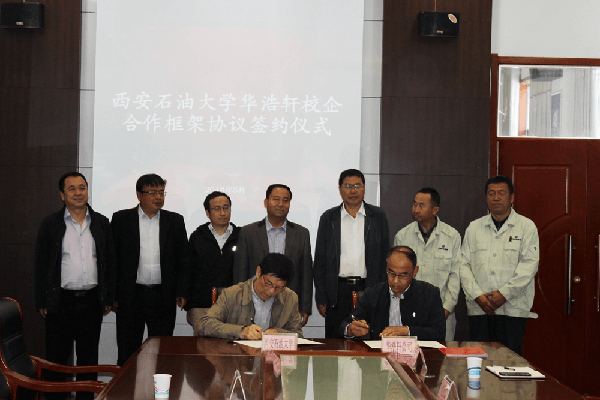 2018年5月22日上午10時,西安石油大學(xué)與陜西華浩軒新能源科技開發(fā)有限公司校企合作簽字儀式在華浩軒公司隆重舉行,西安石油大學(xué)工會主席李方、華浩軒公司董事長劉躍華分別代表雙方在協(xié)議上簽字,西安石油大學(xué)化工院書記候琦、化學(xué)工程系主任曹斌、華浩軒公司總經(jīng)理馬進(jìn)彪、永壽縣工業(yè)發(fā)展局副局長樊德峰等一同出席。簽字儀式由永壽縣教育局督導(dǎo)員黃健身主持。西安石油大學(xué)與華浩軒公司這次校企合作,以雙方建立的產(chǎn)學(xué)研基地為平臺,發(fā)揮西安石油大學(xué)在石油天然氣化工工藝,石油化工工業(yè)催化應(yīng)用技術(shù)、石油油品添加劑的研究與應(yīng)用技術(shù)、石油膠體與界面化學(xué)理論與技術(shù)、石油天然氣環(huán)境科學(xué)與工程等領(lǐng)域的優(yōu)勢,利用華浩軒公司先進(jìn)的生產(chǎn)工藝、一流的化工裝置、科學(xué)的企業(yè)管理為平臺,各自發(fā)揮優(yōu)勢和特色,進(jìn)行深度合作,實現(xiàn)優(yōu)勢互補(bǔ)、共謀發(fā)展、互惠互利、合作共贏的目的。