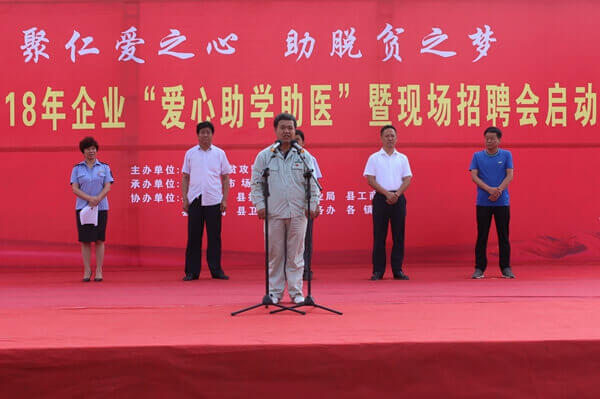 聚仁愛之心,助脫貧之夢,2018年8月3日,由永壽縣脫貧攻堅(jiān)指揮部主辦,永壽縣市場監(jiān)督管理局承辦的永壽縣2018年企業(yè)“愛心助學(xué)助醫(yī)”暨現(xiàn)場招聘會(huì)啟動(dòng)儀式在永壽縣中心廣場隆重舉行,陜西華浩軒新能源科技開發(fā)有限公司等40多家愛心企業(yè)出席了此次活動(dòng)。