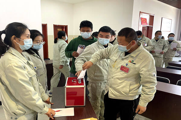 2022年11月15日,華浩軒公司召開了團(tuán)總支換屆選舉大會(huì),大會(huì)由團(tuán)總支部書記郭鵬博主持,公司黨總支書記、董事長(zhǎng)王峰、總支委員趙軍軍到會(huì)指導(dǎo)。